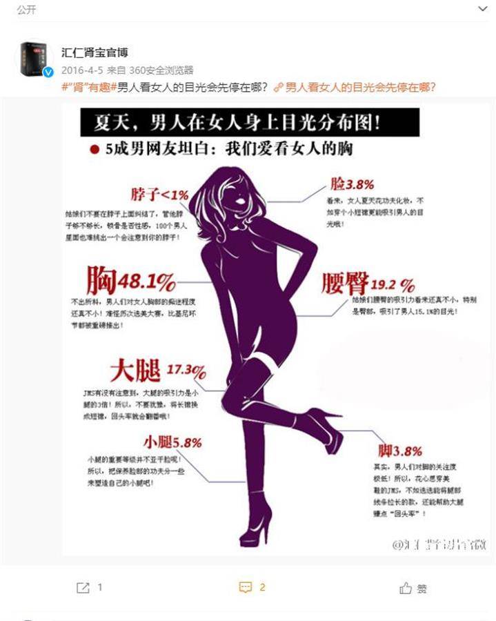 引发网友热议的,是来源于汇仁肾宝官方发布的多篇宣传文章。其发布的一篇博文中这样写道:恭喜谷爱凌夺冠!强“肾”健体,为国争光!在其多年前发布的,另一篇名为《其实女人练瑜伽都是为了男人》的宣传文章中提到,“女人都为了能够解锁更多的姿势而苦练瑜伽了,那你们是不是也要努力的强‘肾’健体,给女人更好的体验呢?话不多说,事后来几片肾宝吧。”
